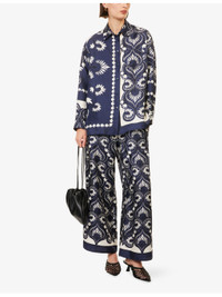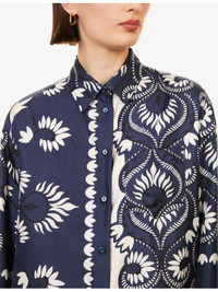 Graphic-Print Patch-Pocket Silk Blouse