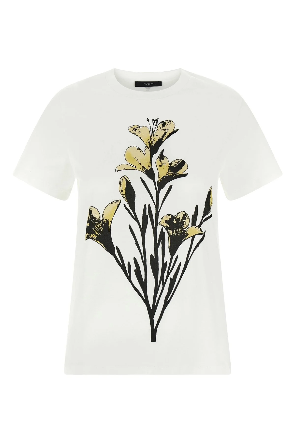 cod. 2525976031600006 'Guglia' cotton jersey T-shirt with print at the back and on sleeves, crew neck, short sleeves. SUSTAINABLE: This product is made of organic cotton. Color: White Size & Fit: true to size fit Composition: 100% cotton Made in: Bulgaria