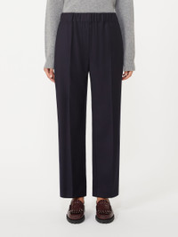 DETAILS Cropped ankle trousers with elasticated waist. Stretch wool flannel trousers Comfort fit Slant pockets at the sides Patch pockets with flap and button on the back Trouser crease COMPOSITION AND CARE 99% virgin wool, 1% elastane. Do not wash; do not bleach; do not tumble dry; cool iron; professionally dry clean perchloroethylene - mild process; do not wet clean. Distributed by Max Mara S.r.l., registered office in Reggio Emilia (Italy), Via Giulia Maramotti 4, 42124 (IT)