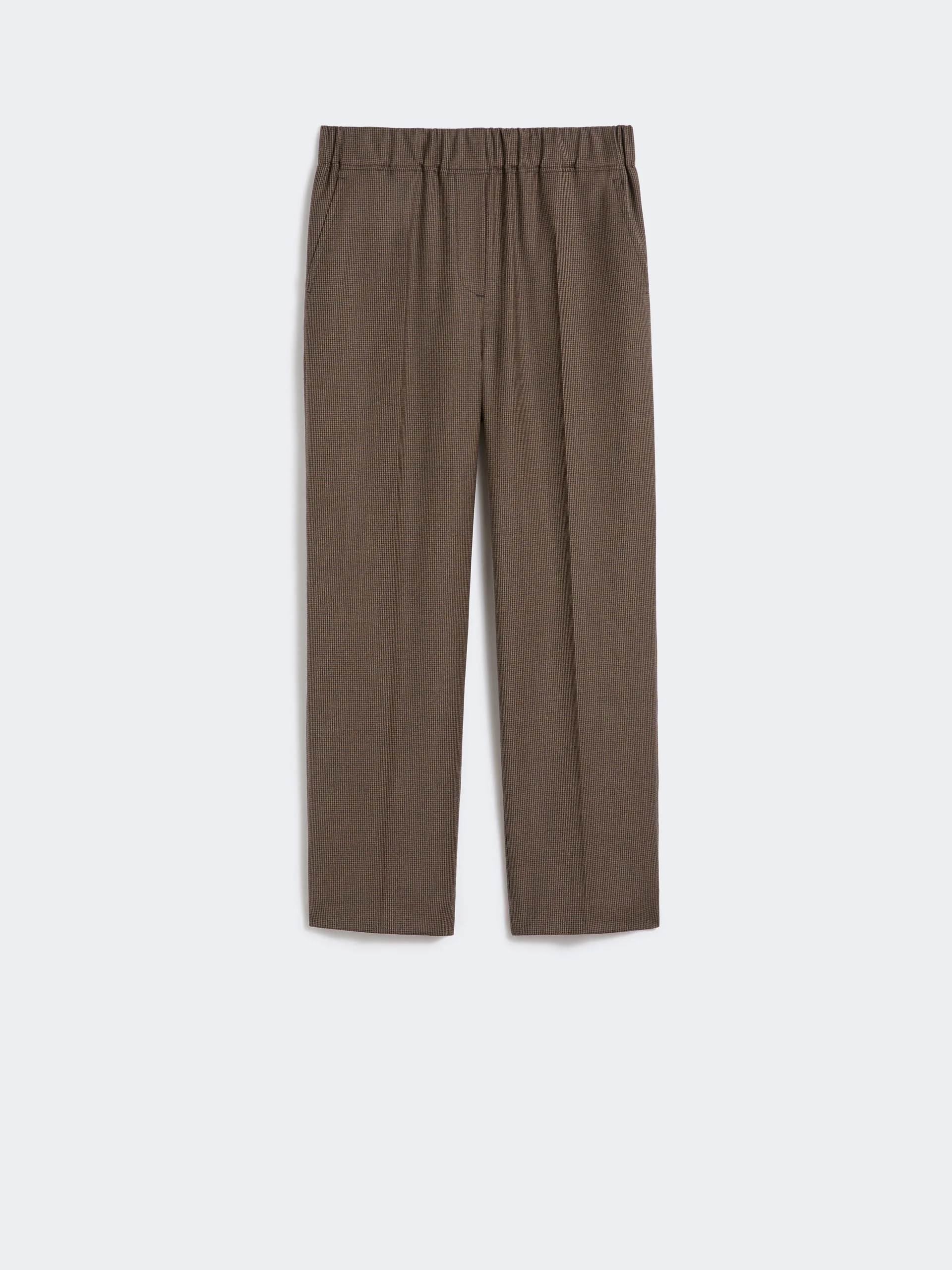 DETAILS Cropped ankle trousers with elasticated waist. Stretch wool flannel trousers Comfort fit Slant pockets at the sides Patch pockets with flap and button on the back Trouser crease COMPOSITION AND CARE 99% virgin wool, 1% elastane. Do not wash; do not bleach; do not tumble dry; cool iron; professionally dry clean perchloroethylene - mild process; do not wet clean. Distributed by Max Mara S.r.l., registered office in Reggio Emilia (Italy), Via Giulia Maramotti 4, 42124 (IT)