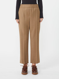 DETAILS Cropped ankle trousers with elasticated waist. Stretch wool flannel trousers Comfort fit Slant pockets at the sides Patch pockets with flap and button on the back Trouser crease COMPOSITION AND CARE 99% virgin wool, 1% elastane. Do not wash; do not bleach; do not tumble dry; cool iron; professionally dry clean perchloroethylene - mild process; do not wet clean. Distributed by Max Mara S.r.l., registered office in Reggio Emilia (Italy), Via Giulia Maramotti 4, 42124 (IT)