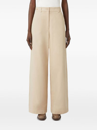 high-waisted wide-leg trousers Highlights - Beige - Front button and zip fastening - Wide-leg - Belt loops - Side slit pockets - Rear welt pockets Made in Italy Composition Cotton 100% Washing instructions Read Manufacturer Guidelines