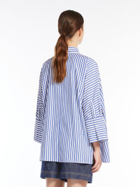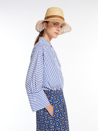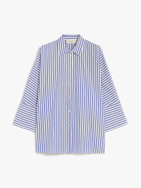 DETAILS Oversized shirt made of pure cotton poplin. The style features a classic pointed collar, wide three-quarter length sleeves with wide cuffs and a small side button. Front fastening with visible buttons. The main fabric of this piece contains at least 50% cotton fibre grown according to organic farming standards. COMPOSITION AND CARE 100% cotton. Machine wash cold delicate cycle; do not bleach; do not tumble dry; line drying in the shade; cool iron; professionally dry clean perchloroethylene - mild process.; wash the garment while it is fastened.; turn the articles inside out before washing.; contains non-textile parts of animal origin. Distributed by Max Mara S.r.l., registered office in Reggio Emilia (Italy), Via Giulia Maramotti 4, 42124 (IT)