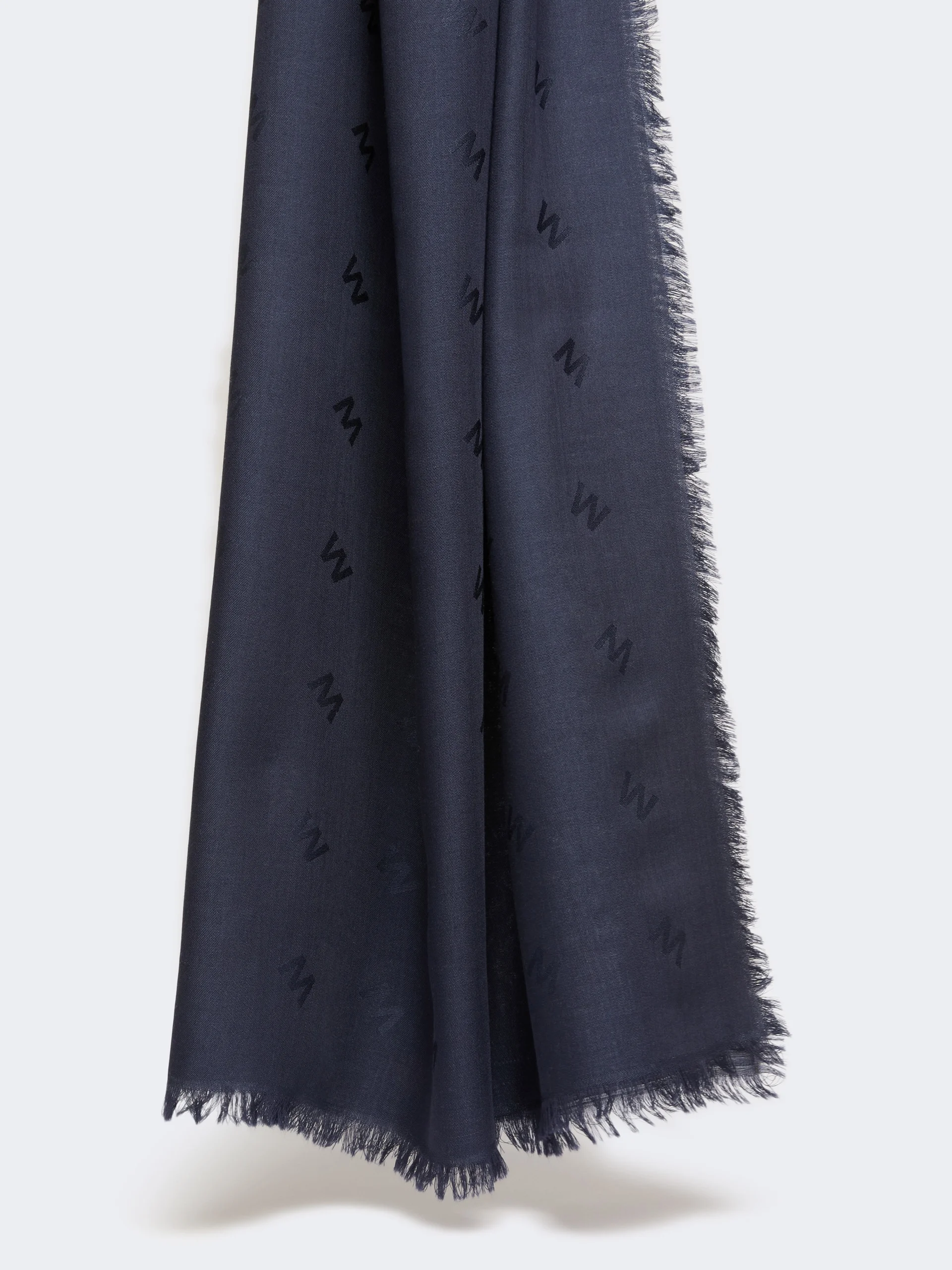 Jacquard-knit wool and silk shawl - MIDNIGHTBLUE