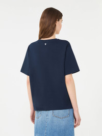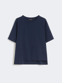 DETAILS Basic T-shirt, featuring interlock stitching and heat-sealed details. - Main fabric made of organic cotton - Pure cotton jersey T-shirt - Boxy cut with side slits - Crew neck - Short sleeves - Hem slightly longer at the back - Small logo printed on the back of the neck COMPOSITION AND CARE 100% cotton. Hand wash cold (40°c max); do not bleach; do not tumble dry; flat drying in the shade; cool iron; do not dry clean; do not wet clean.; iron with a cloth between.; using neutral detergent.; don’t rub.; turn the articles inside out before washing.; to be ironed on reverse. Distributed by Max Mara S.r.l., registered office in Reggio Emilia (Italy), Via Giulia Maramotti 4, 42124 (IT) Collection: Weekend Max Mara Product code: 5941036106004 - WKDMULTID