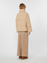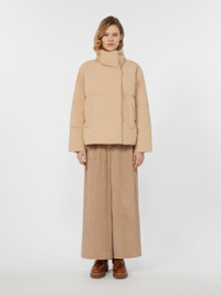 DETAILS Goose-down jacket with all-over quilted motif and cropped to the waist. Jacket in water-repellent tech fabric Straight cut High neck with stowaway hood Long set-in sleeves Front fastening with snap buttons Welt pockets on the sides COMPOSITION AND CARE Fabric 100% polyamide; lining 100% polyester; with quilting virgin down. Machine wash cold delicate cycle; do not bleach; do not tumble dry; line drying in the shade; cool iron; professionally dry clean perchloroethylene - mild process.; home washing: wash in lukewarm water with a gentle wash machine program. use liquid detergent with neuter ph. rinse several times until clear water is discharged. dry away from direct heating. squeeze and stretch to favor volume recovery.; wash the garment while it is fastened.; don’t iron the labels.; contains non-textile parts of animal origin. Distributed by Max Mara S.r.l., registered office in Reggio Emilia (Italy), Via Giulia Maramotti 4, 42124 (IT)