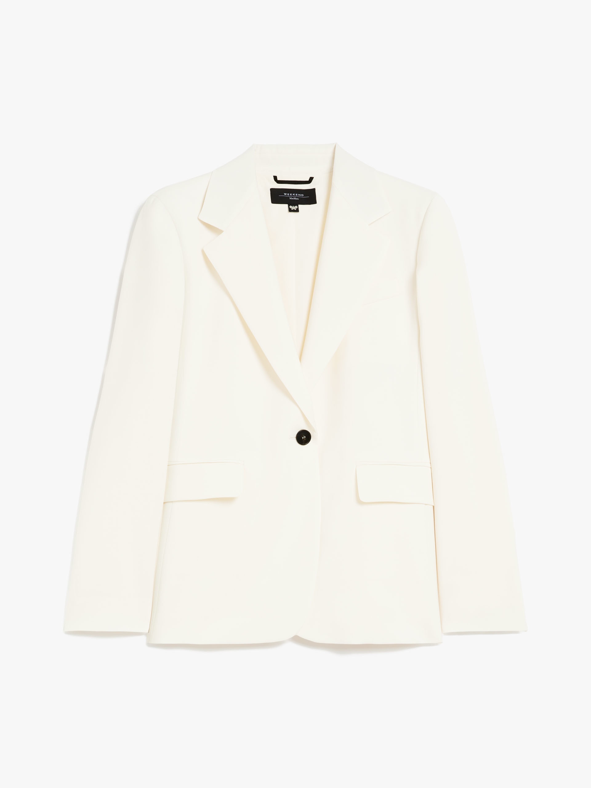 DETAILS Single-breasted blazer in fine natural stretch pure wool fabric featuring a fitted waist and central rear vent. The tailoring-inspired lined model boasts a lapel collar, breast pocket and flap-adorned front pockets. One-button fastening. COMPOSITION AND CARE Fabric 100% virgin wool; lining 100% polyester. Do not wash; do not bleach; do not tumble dry; cool iron; professionally dry clean perchloroethylene - mild process; do not wet clean.; wash the garment while it is fastened.; contains non-textile parts of animal origin. Distributed by Max Mara S.r.l., registered office in Reggio Emilia (Italy), Via Giulia Maramotti 4, 42124 (IT)