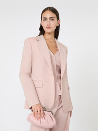 DETAILS Single-breasted blazer embellished with tailored-style details. Blazer in natural stretch pure woollen cloth Figure-skimming fit with a rear vent Lapel collar Long set-in sleeves with buttoned hem detail One-button fastening Breast pocket and flap front pockets Lined model COMPOSITION AND CARE Fabric 100% virgin wool; lining 100% polyester. Do not wash; do not bleach; do not tumble dry; cool iron; professionally dry clean perchloroethylene - mild process; do not wet clean.; wash the garment while it is fastened.; contains non-textile parts of animal origin. Distributed by Max Mara S.r.l., registered office in Reggio Emilia (Italy), Via Giulia Maramotti 4, 42124 (IT)