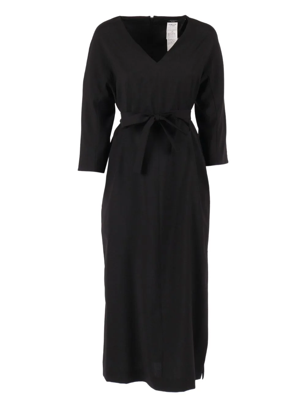 Laziale belted dress Highlights - Black - V-neck - Belt - Three-quarter sleeves - Rear zip fastening - Wool Imported Composition Outer: Virgin Wool 100% Lining: Polyester 95%, Lycra 5% Washing instructions Read Manufacturer Guidelines