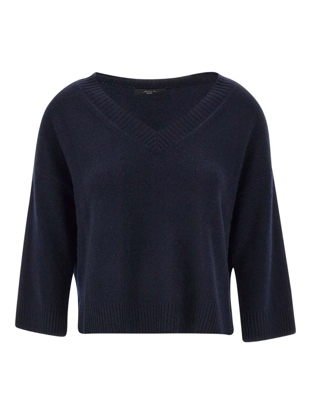 Leva V-neck ribbed jumper Highlights - Blue - V-neck - Ribbed hems - Side slits - Long sleeves - Cashmere Imported Composition Cashmere 100% Washing instructions Read Manufacturer Guidelines