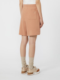 DETAILS Flared soft-textured shorts. Main fabric with at least 50% cotton fibers, grown and processed according to organic farming systems Organic cotton fleece shorts Drawstring-adjustable elasticated waist Slant side pockets Patch rear right pocket Sewn pleat detail on the front Small side slit detail COMPOSITION AND CARE Jersey fabric 87% cotton, 13% polyester; - exclusive of embroideries. Machine wash cold delicate cycle; do not bleach; do not tumble dry; flat drying in the shade; cool iron; professionally dry clean perchloroethylene - mild process; professional wet cleaning - very mild process.; iron with a cloth between.; using neutral detergent.; turn the articles inside out before washing.; to be ironed on reverse. Distributed by Max Mara S.r.l., registered office in Reggio Emilia (Italy), Via Giulia Maramotti 4, 42124 (IT)