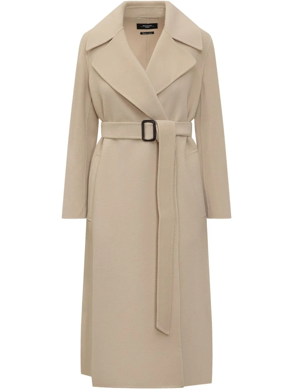 Manu coat Highlights - Light beige - Belted waist - Two side welt pockets - Central rear vent - Notched collar Made in Italy Composition Virgin Wool 100% Washing instructions Specialist Cleaning