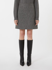 DETAILS Short, slightly flared skirt with a characteristic Chevron design. Skirt in pure wool fabric with Shetland-effect finish Back zip fastening Back waist darts Lined COMPOSITION AND CARE Outer fabric 100% virgin wool; inner fabric 100% polyester; lining 100% polyester. Do not wash; do not bleach; do not tumble dry; cool iron; professionally dry clean perchloroethylene - mild process; do not wet clean. Distributed by Max Mara S.r.l., registered office in Reggio Emilia (Italy), Via Giulia Maramotti 4, 42124 (IT)