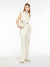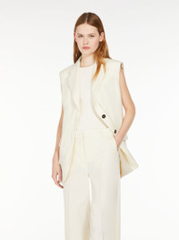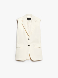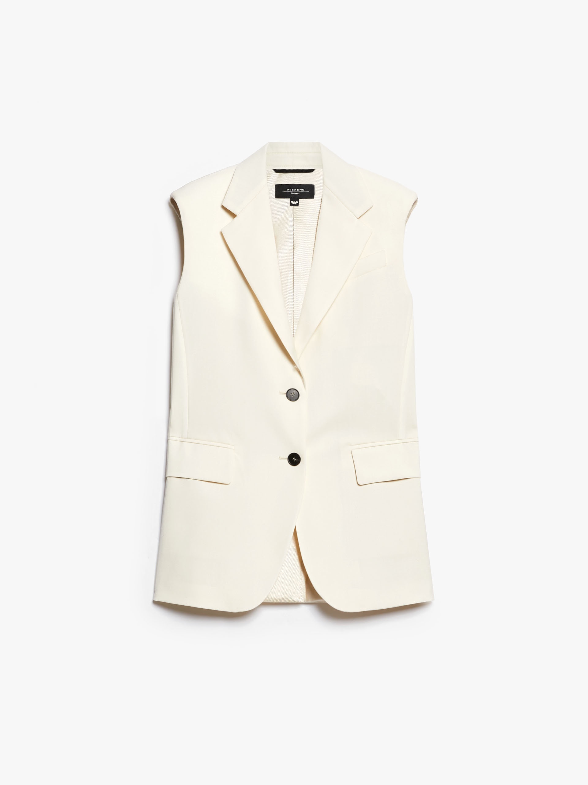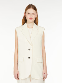 DETAILS Gilet in stretch pure woollen cloth featuring a mannish tailored design with a classic lapel collar, welt breast pocket and flap front pockets. The lined model boasts a central rear vent and visible button-fastening. COMPOSITION AND CARE Fabric 100% virgin wool; lining 50% acetate, 50% viscose. Do not wash; do not bleach; do not tumble dry; cool iron; professionally dry clean perchloroethylene - mild process; do not wet clean. Distributed by Max Mara S.r.l., registered office in Reggio Emilia (Italy), Via Giulia Maramotti 4, 42124 (IT)