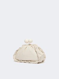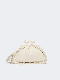 DETAILS The Medium Pasticcino Bag is the awesome clutch that will add a personal, captivating touch to your everyday style. - Soft Nappa leather bag with maxi piping and threading detail - Striped fabric lining - Patch inner pocket with branded label detail - Short woven leather shoulder strap and long chain strap with shoulder pad detail - Shoulder strap attachment at the sides - Maxi metal Weekend Max Mara-branded sphere clasp - Size: 31 x 13 x 21 cm. - Weight: 880 g COMPOSITION AND CARE Handbag in lamb leather; lining in 100%polyester. Distributed by Max Mara S.r.l., registered office in Reggio Emilia (Italy), Via Giulia Maramotti 4, 42124 (IT) Collection: Weekend Max Mara Product code: 5511146406001 - WKALECITO