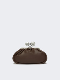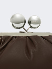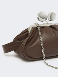 DETAILS Medium Pasticcino bag - a remarkable clutch that adds a personal and captivating touch to your daily style. Soft, lightweight nappa sheepskin bag Striped fabric lining and maxi piping on the trim Internal patch pocket with personalized label Short leather shoulder strap and long chain strap with leather shoulder pad Double attachment for shoulder straps and charm, positioned at the top or sides Weekend Max Mara customised fastening with large metal spheres Measurements: 31 x 13 x 21 cm. COMPOSITION AND CARE Handbag in ram; lining in 100%polyester. Distributed by Max Mara S.r.l., registered office in Reggio Emilia (Italy), Via Giulia Maramotti 4, 42124 (IT)