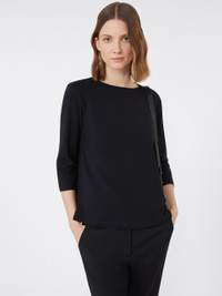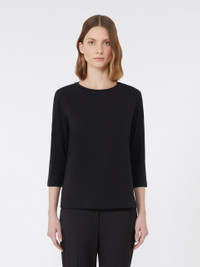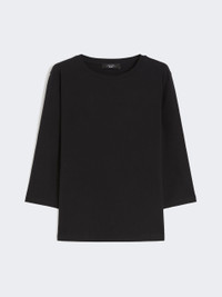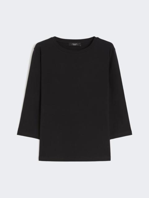 DETAILS Regular-fit basic T-shirt. - Main fabric with at least 50% cotton fibers, grown and processed according to organic farming systems - Stretch cotton jersey T-shirt - Boat neckline - Set-in 3/4 sleeves COMPOSITION AND CARE 95% cotton, 5% elastane. Machine wash cold delicate cycle; do not bleach; do not tumble dry; flat drying in the shade; cool iron; do not dry clean; professional wet cleaning - very mild process.; iron with a cloth between.; using neutral detergent.; turn the articles inside out before washing.; to be ironed on reverse. Distributed by Max Mara S.r.l., registered office in Reggio Emilia (Italy), Via Giulia Maramotti 4, 42124 (IT)