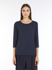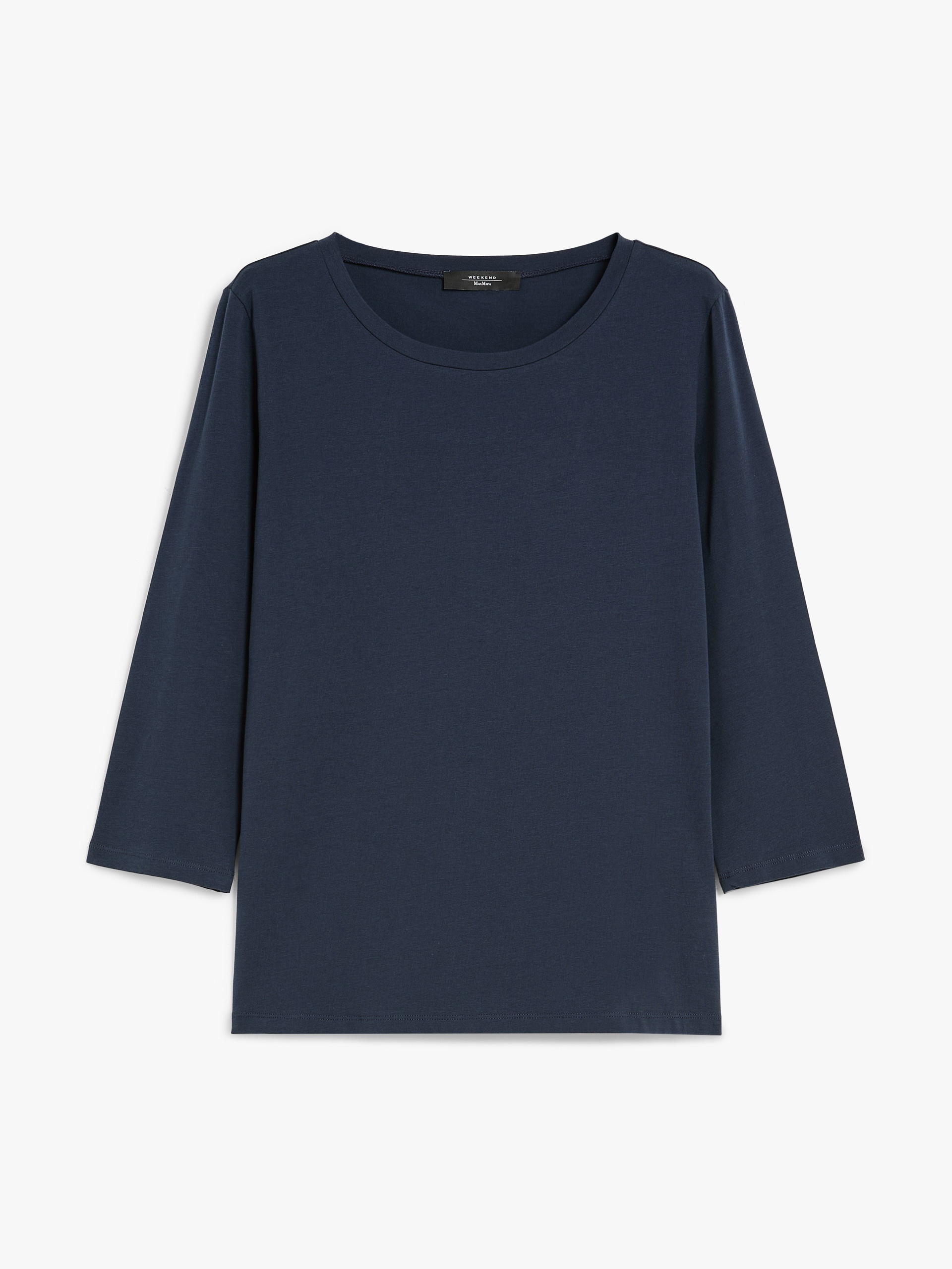 DETAILS 3/4-sleeve boat-neck T-shirt in soft stretch organic cotton jersey fabric. The straight-fit model boasts a butterfly logo print on the back of the neck. The garment's main fabric contains at least 50% cotton fibre grown according to the organic farming principles. COMPOSITION AND CARE 95% cotton, 5% elastane. Machine wash cold delicate cycle; do not bleach; do not tumble dry; flat drying in the shade; cool iron; do not dry clean; professional wet cleaning - very mild process.; iron with a cloth between.; using neutral detergent.; turn the articles inside out before washing.; to be ironed on reverse. Distributed by Max Mara S.r.l., registered office in Reggio Emilia (Italy), Via Giulia Maramotti 4, 42124 (IT)