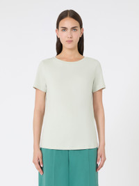 DETAILS Basic T-shirt with a regular fit and cut. Main fabric with at least 50% cotton fibers, grown and processed according to organic farming systems Stretch organic cotton jersey T-shirt Crew-neck Short set-in sleeves COMPOSITION AND CARE 95% cotton, 5% elastane. Machine wash cold delicate cycle; do not bleach; do not tumble dry; flat drying in the shade; cool iron; do not dry clean; professional wet cleaning - very mild process.; iron with a cloth between.; using neutral detergent.; turn the articles inside out before washing.; to be ironed on reverse. Distributed by Max Mara S.r.l., registered office in Reggio Emilia (Italy), Via Giulia Maramotti 4, 42124 (IT)