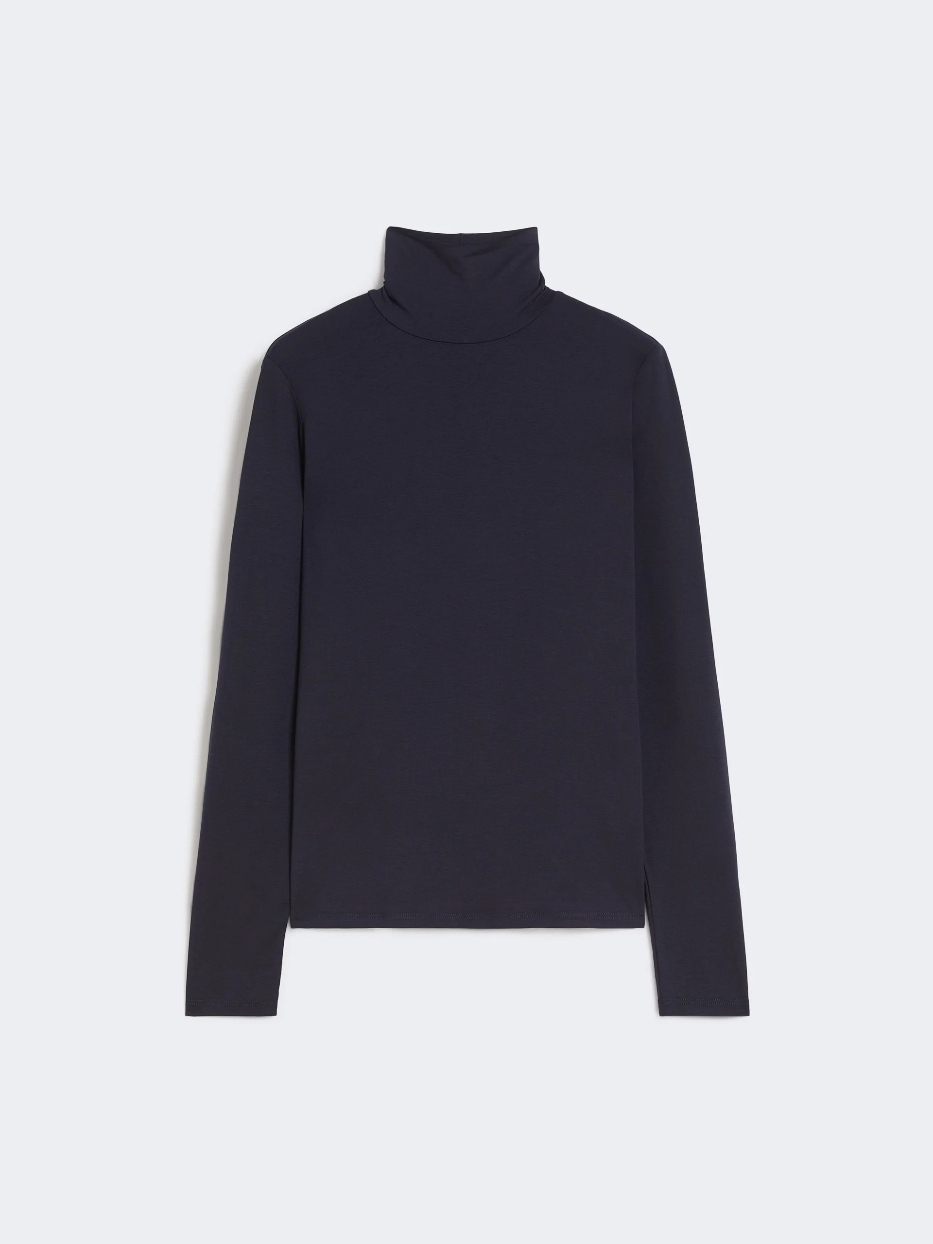 DETAILS Turtleneck jumper with an essential and feminine silhouette. Stretch-viscose jersey turtleneck Figure-hugging High neck Long set-in sleeves Butterfly logo printed on the back of the collar COMPOSITION AND CARE 95% viscose, 5% elastane. Hand wash cold (40°c max); do not bleach; do not tumble dry; drip line drying in the shade; cool iron; do not dry clean; do not wet clean.; iron with a cloth between.; using neutral detergent.; don’t rub.; turn the articles inside out before washing.; to be ironed on reverse. Distributed by Max Mara S.r.l., registered office in Reggio Emilia (Italy), Via Giulia Maramotti 4, 42124 (IT)