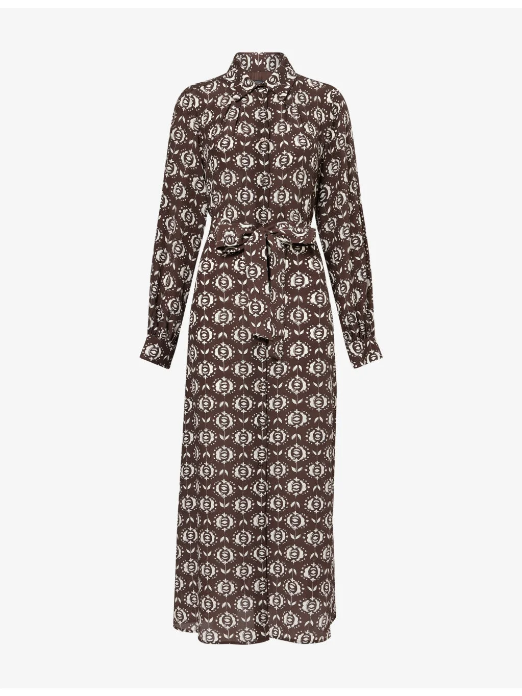 PRODUCT DETAILS - Weekend Max Mara silk midi dress - 100% silk - Exposed button fastening at front - Relaxed fit, H-line silhouette, spread collar, long sleeves, buttoned cuffs, two slip pockets at front, belt loops, detachable belt, all-over floral print, all-over satin texture - Hand wash cold - True to size - Size UK 8: length 51in / 130cm - Model is 5ft 10in/1.78m and wears a size UK 8 - Lightweight, slight stretch Ref: R04478758