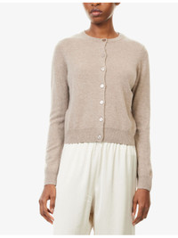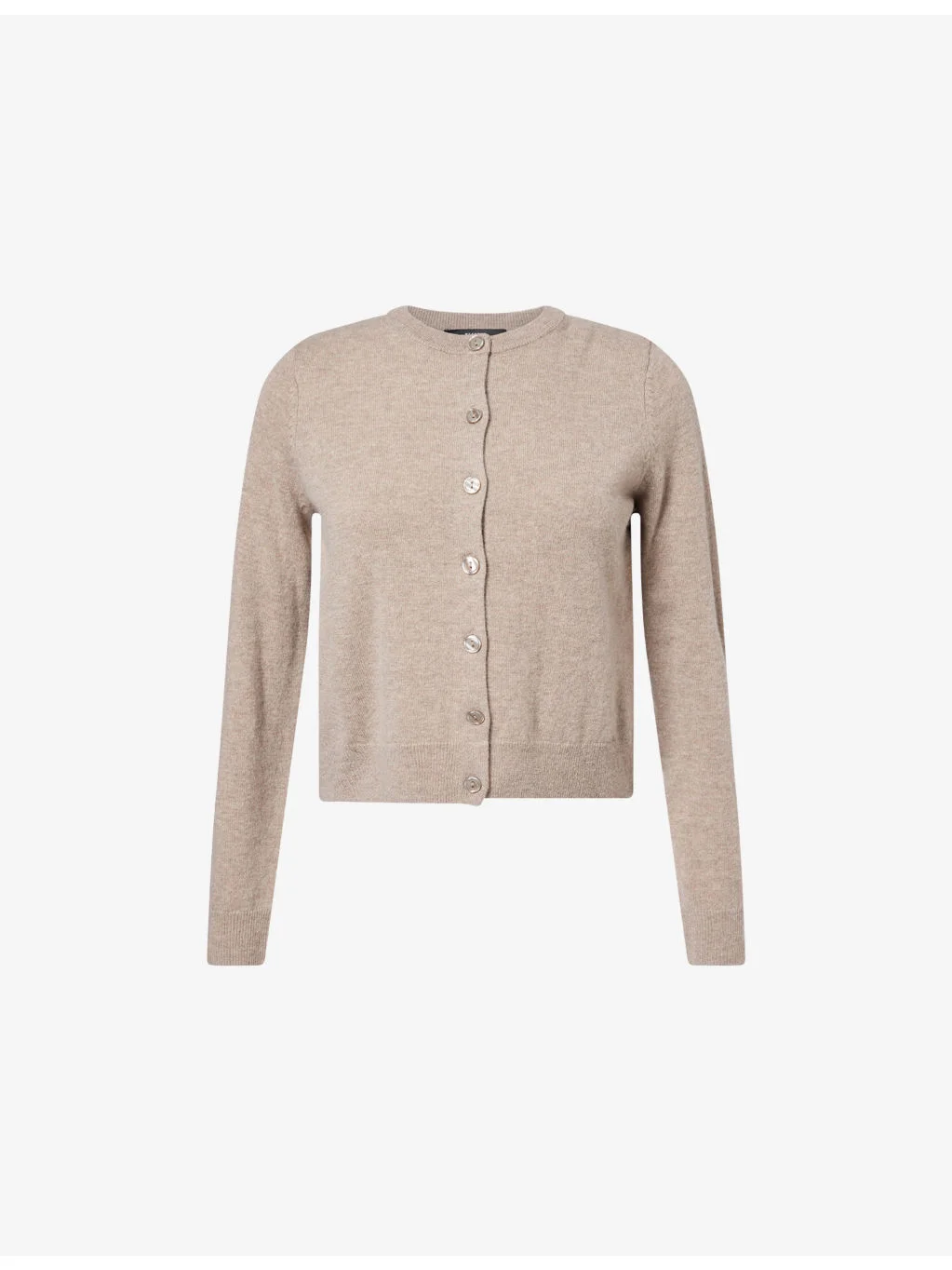 PRODUCT DETAILS - Weekend Max Mara wool and cashmere cardigan - 80% wool, 20% cashmere - Exposed button fastening at front - Regular fit, round-neck, long sleeves, all-over knitted, ribbed trims - Hand wash cold - True to size - Size small: length 19in / 49cm - Model is 5ft 10in/1.78m and wears a size small - Midweight, stretchy Ref: R04552957
