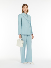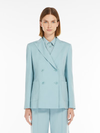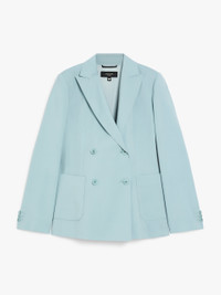 DETAILS Double-breasted blazer made of exquisite, stretch pure wool canvas. The style features a tailored construction with a slightly fitted line, peak lapel collar, front patch pockets, buttoned cuffs and a central vent at the back. Lined style, finished with hand-sewn tailoring pick stitch. Button fastening. COMPOSITION AND CARE Fabric 100% virgin wool; lining 100% polyester; sleeves lining 65% acetate, 31% polyamide, 4% elastane. Do not wash; do not bleach; do not tumble dry; cool iron; professionally dry clean perchloroethylene - mild process; do not wet clean.; wash the garment while it is fastened.; protect buttons before washing.; turn the articles inside out before washing.; contains non-textile parts of animal origin. Distributed by Max Mara S.r.l., registered office in Reggio Emilia (Italy), Via Giulia Maramotti 4, 42124 (IT)