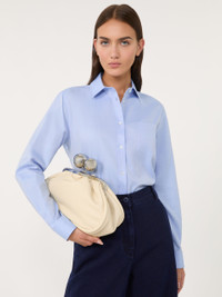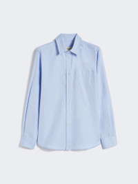 DETAILS Menswear-inspired straight line shirt with patch pocket on the chest. Pure cotton Oxford shirt Shirt collar and cuffs Long set-in sleeves Mother-of-pearl button front fastening Yoke seam and central pleat on the back Rounded hem Small butterfly logo embroidered on the front hem COMPOSITION AND CARE Fabric 100% cotton; - exclusive of embroideries. Machine wash cold delicate cycle; do not bleach; do not tumble dry; line drying in the shade; cool iron; professionally dry clean perchloroethylene - mild process.; wash the garment while it is fastened.; turn the articles inside out before washing.; contains non-textile parts of animal origin. Distributed by Max Mara S.r.l., registered office in Reggio Emilia (Italy), Via Giulia Maramotti 4, 42124 (IT)
