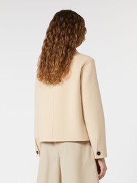 DETAILS Single-breasted jacket featuring a slightly flared shirt cut. - Jacket in double-faced wool fabric - Classic pointed collar - Drop-shoulder long sleeves - Visible button fastening on the front - Patch breast pocket - Button detail on the side of the double cuffs - Unlined model COMPOSITION AND CARE Fabric 90% virgin wool, 10% polyamide; - except joining thread. Do not wash; do not bleach; do not tumble dry; cool iron; professionally dry clean perchloroethylene - mild process; do not wet clean. Distributed by Max Mara S.r.l., registered office in Reggio Emilia (Italy), Via Giulia Maramotti 4, 42124 (IT)