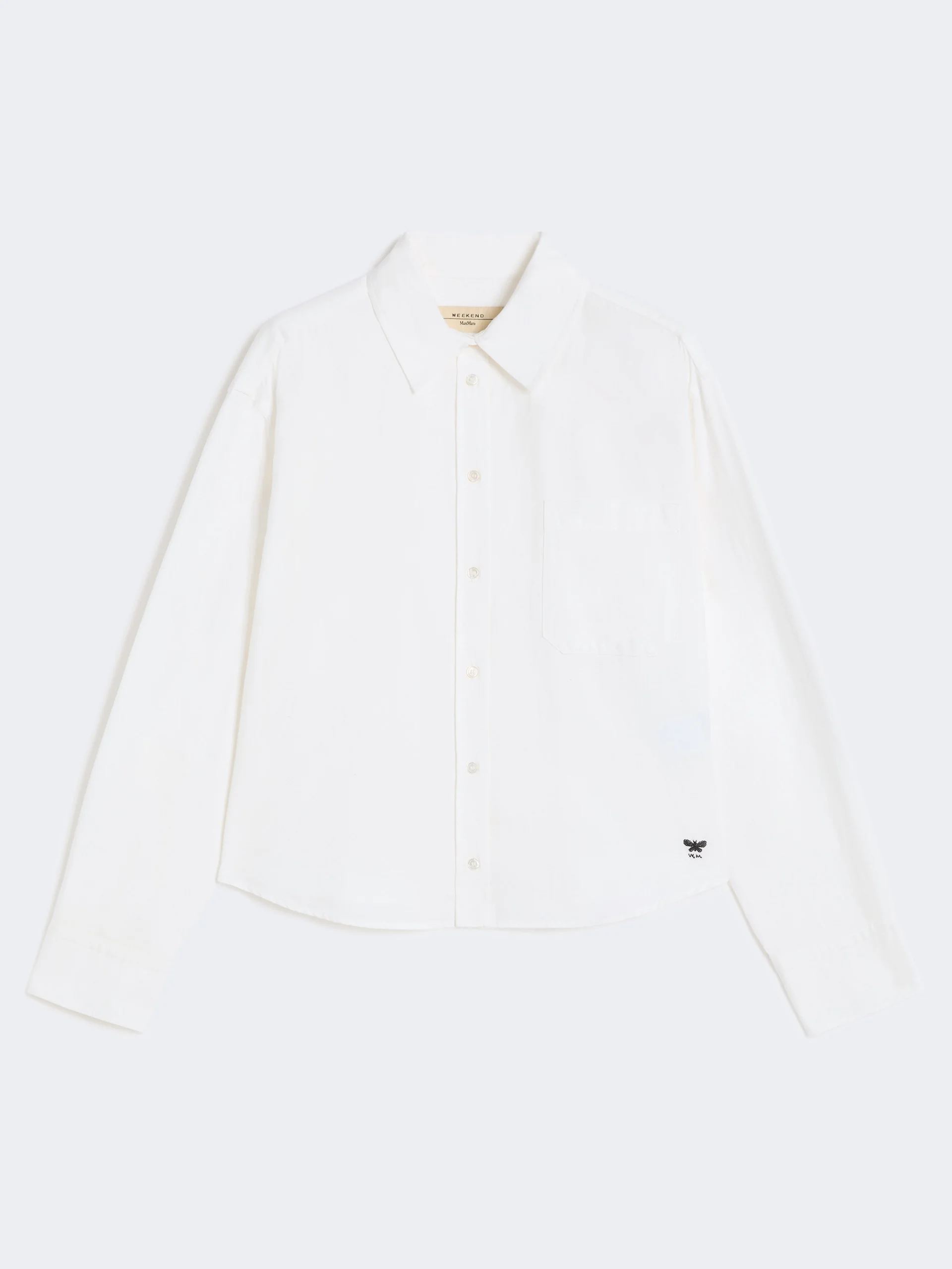 DETAILS Straight-fit classic shirt featuring a small embroidered butterfly logo on the left hem. Main fabric with cotton fibers, grown and processed according to organic farming systems Shirt in pure cotton Oxford cloth Set-in sleeves with button detail on the side of the cuffs Mother-of-pearl button fastening on the front Patch breast pocket Pleated darted rear yoke Rounded hem COMPOSITION AND CARE Fabric 100% cotton; - exclusive of embroideries. Machine wash cold delicate cycle; do not bleach; do not tumble dry; line drying in the shade; cool iron; professionally dry clean perchloroethylene - mild process.; wash the garment while it is fastened.; turn the articles inside out before washing.; contains non-textile parts of animal origin. Distributed by Max Mara S.r.l., registered office in Reggio Emilia (Italy), Via Giulia Maramotti 4, 42124 (IT)