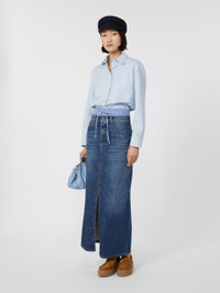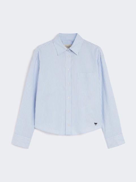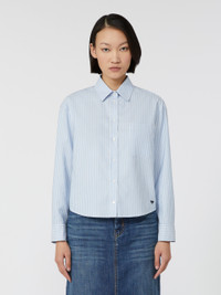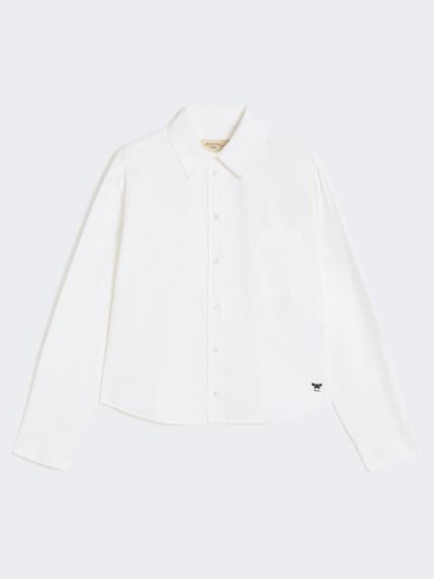 DETAILS Straight-fit classic shirt featuring a small embroidered butterfly logo on the left hem. Main fabric with cotton fibers, grown and processed according to organic farming systems Shirt in pure cotton Oxford cloth Set-in sleeves with button detail on the side of the cuffs Mother-of-pearl button fastening on the front Patch breast pocket Pleated darted rear yoke Rounded hem COMPOSITION AND CARE Fabric 100% cotton; - exclusive of embroideries. Machine wash cold delicate cycle; do not bleach; do not tumble dry; line drying in the shade; cool iron; professionally dry clean perchloroethylene - mild process.; wash the garment while it is fastened.; turn the articles inside out before washing.; contains non-textile parts of animal origin. Distributed by Max Mara S.r.l., registered office in Reggio Emilia (Italy), Via Giulia Maramotti 4, 42124 (IT)
