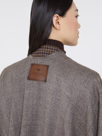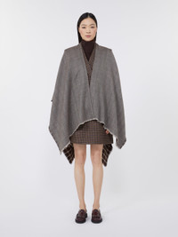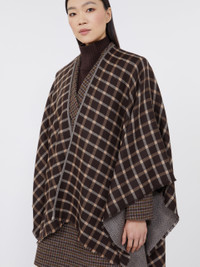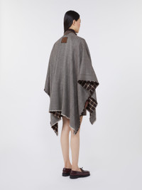 DETAILS Enveloping cape with a characteristic double-face design. Yarn-dyed pure wool cloak Masculine inspired design, different on each side Fringed edges Customised leather label on the hem Measurements: 160 x 130 cm COMPOSITION AND CARE 100% wool. Do not wash; do not bleach; do not tumble dry; cool iron; professionally dry clean perchloroethylene - mild process; do not wet clean.; do not iron the real leather details.; contains non-textile parts of animal origin. Distributed by Max Mara S.r.l., registered office in Reggio Emilia (Italy), Via Giulia Maramotti 4, 42124 (IT)