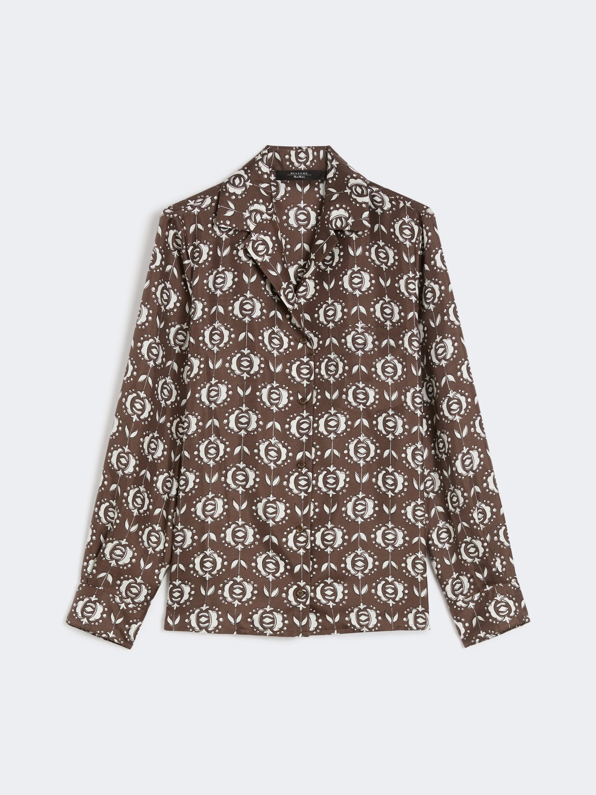 DETAILS Straight-fit pyjama-style shirt. Printed pure silk twill shirt 2-in-1 small lapel collar Long set-in sleeves Mother-of-pearl button fastening on the front Patch breast pocket Button detail on the side of the double cuffs Square hem with side slit detail COMPOSITION AND CARE 100% silk. Do not wash; do not bleach; do not tumble dry; cool iron; professionally dry clean perchloroethylene - mild process; do not wet clean.; wash the garment while it is fastened.; turn the articles inside out before washing.; contains non-textile parts of animal origin. Distributed by Max Mara S.r.l., registered office in Reggio Emilia (Italy), Via Giulia Maramotti 4, 42124 (IT)