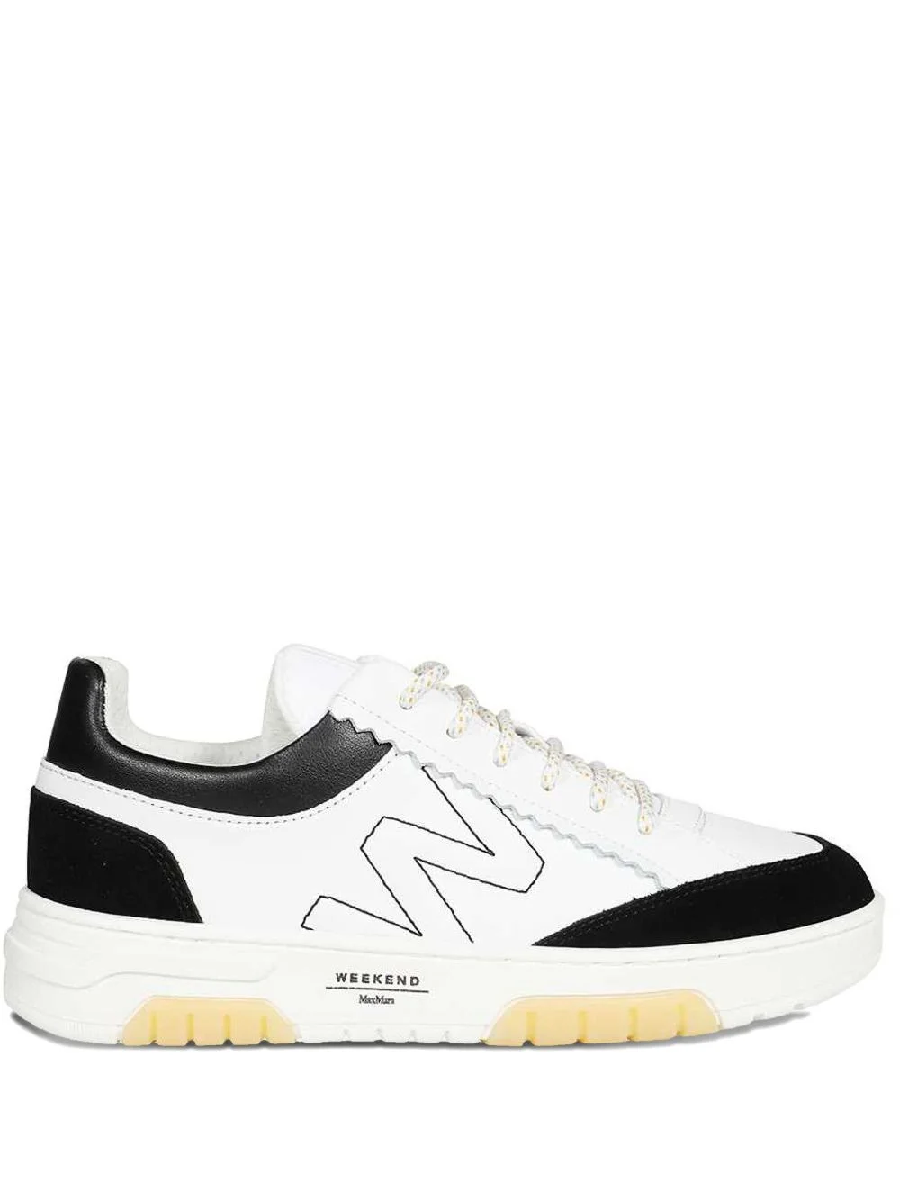 Orlaya leather logo-detail sneakers Highlights - White - Black suede inserts - Scalloped trim - Round toe - Flat laces - Chunky sole Made in Italy Composition Lining: Calf Leather 100% Outer: Calf Leather 100% Sole: Rubber 100%