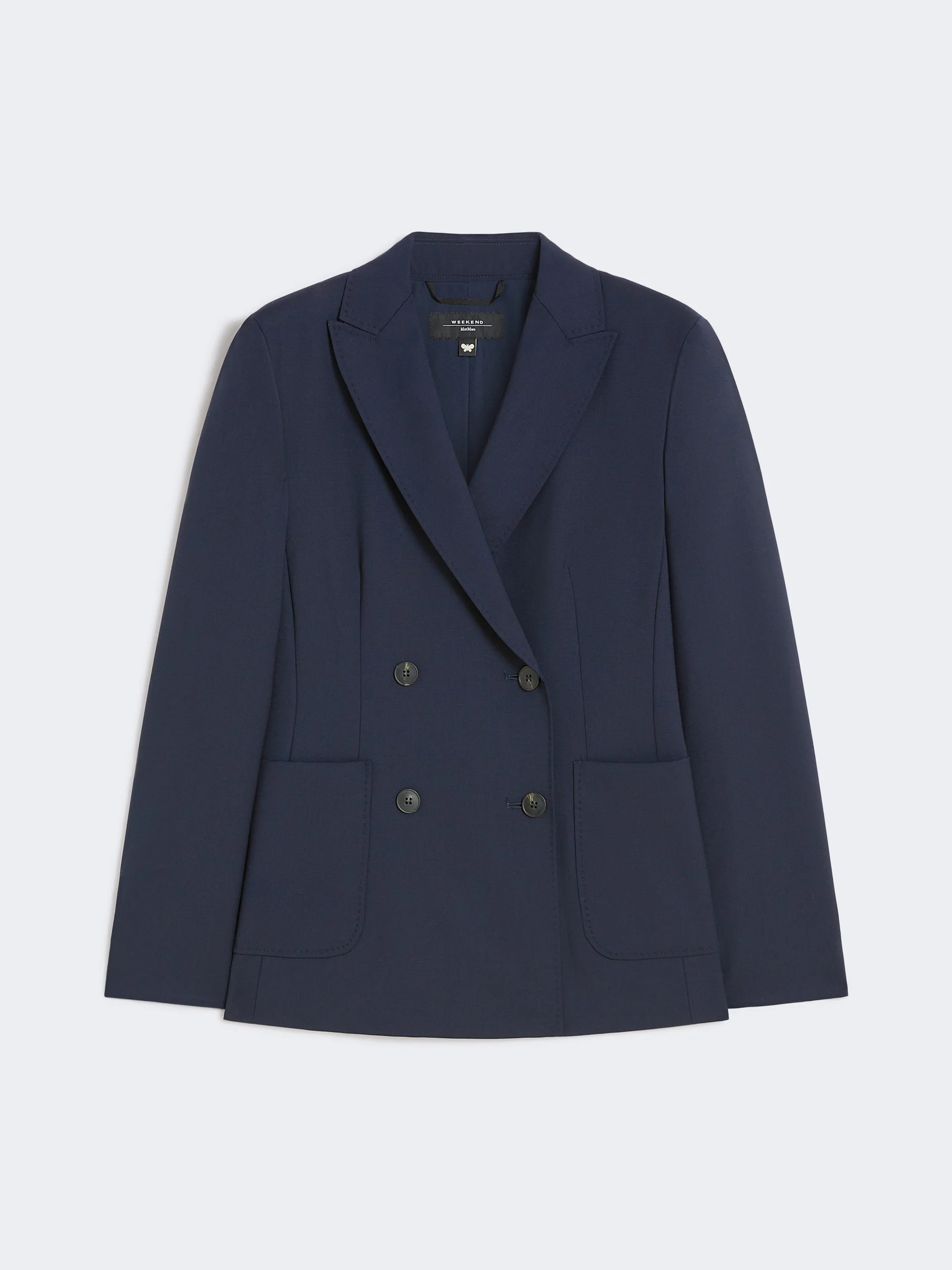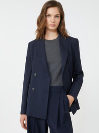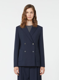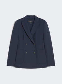 DETAILS Double-breasted blazer with tailored construction, finished with hand-sewn pick stitch. Pure stretch wool blazer Slightly fitted line with central slit on the back Collar with peak lapels Set-in sleeves with button at the cuff Front fastening with visible buttons Patch pockets on the front Lined COMPOSITION AND CARE Fabric 100% virgin wool; lining 100% polyester; sleeves lining 65% acetate, 31% polyamide, 4% elastane. Do not wash; do not bleach; do not tumble dry; cool iron; professionally dry clean perchloroethylene - mild process; do not wet clean.; wash the garment while it is fastened.; contains non-textile parts of animal origin. Distributed by Max Mara S.r.l., registered office in Reggio Emilia (Italy), Via Giulia Maramotti 4, 42124 (IT)