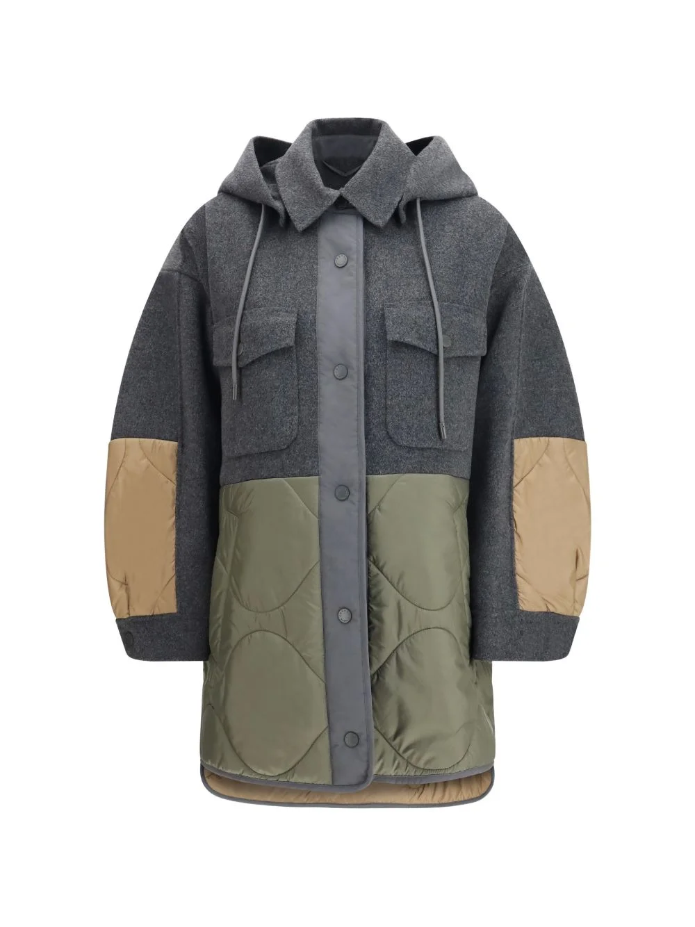 Ossola hooded quilted coat Highlights - Grey/multicolour - Button fastening - Quilted panels - Two side pockets - Two chest flap pockets - Drawstring hood Imported Composition Wool 90%, Polyamide 10% Washing instructions Read Manufacturer Guidelines