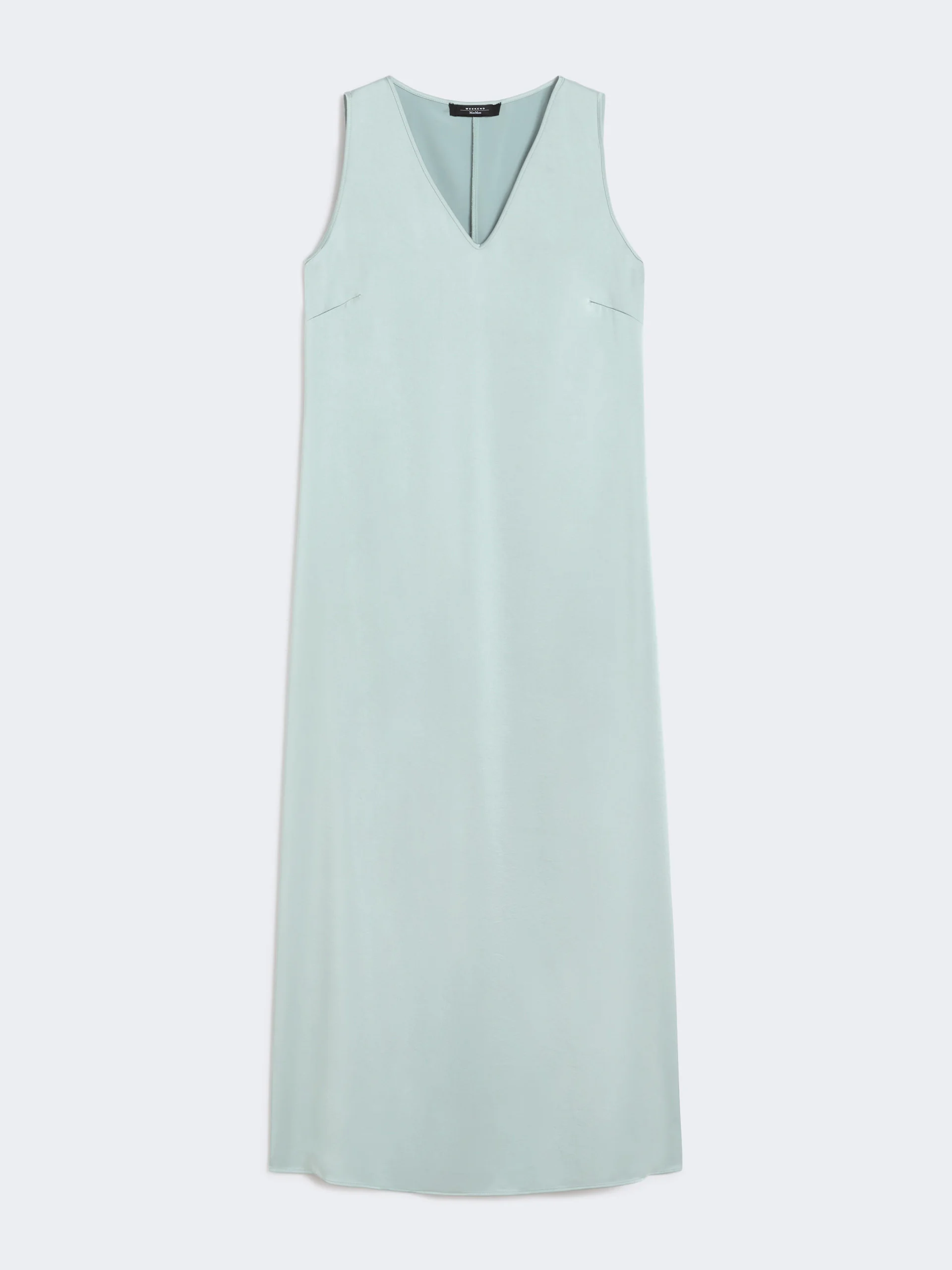 DETAILS Fluid-fit long dress with a flared skirt. Washed satin dress V-neck Sleeveless design Concealed zip fastening at the side Wide shoulder straps Unlined model COMPOSITION AND CARE 100% polyester. Machine wash cold delicate cycle; do not bleach; do not tumble dry; line drying in the shade; cool iron; professionally dry clean perchloroethylene - mild process. Distributed by Max Mara S.r.l., registered office in Reggio Emilia (Italy), Via Giulia Maramotti 4, 42124 (IT)