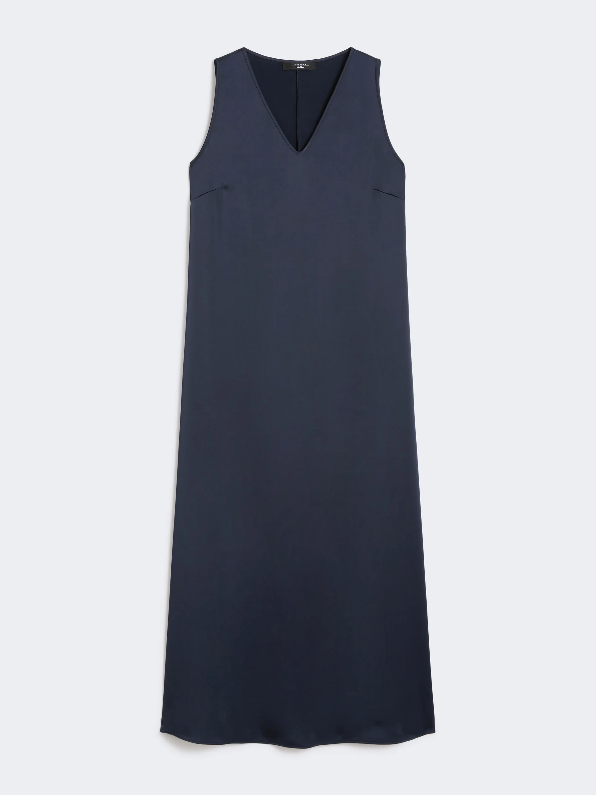 DETAILS Fluid-fit long dress with a flared skirt. Washed satin dress V-neck Sleeveless design Concealed zip fastening at the side Wide shoulder straps Unlined model COMPOSITION AND CARE 100% polyester. Machine wash cold delicate cycle; do not bleach; do not tumble dry; line drying in the shade; cool iron; professionally dry clean perchloroethylene - mild process. Distributed by Max Mara S.r.l., registered office in Reggio Emilia (Italy), Via Giulia Maramotti 4, 42124 (IT)