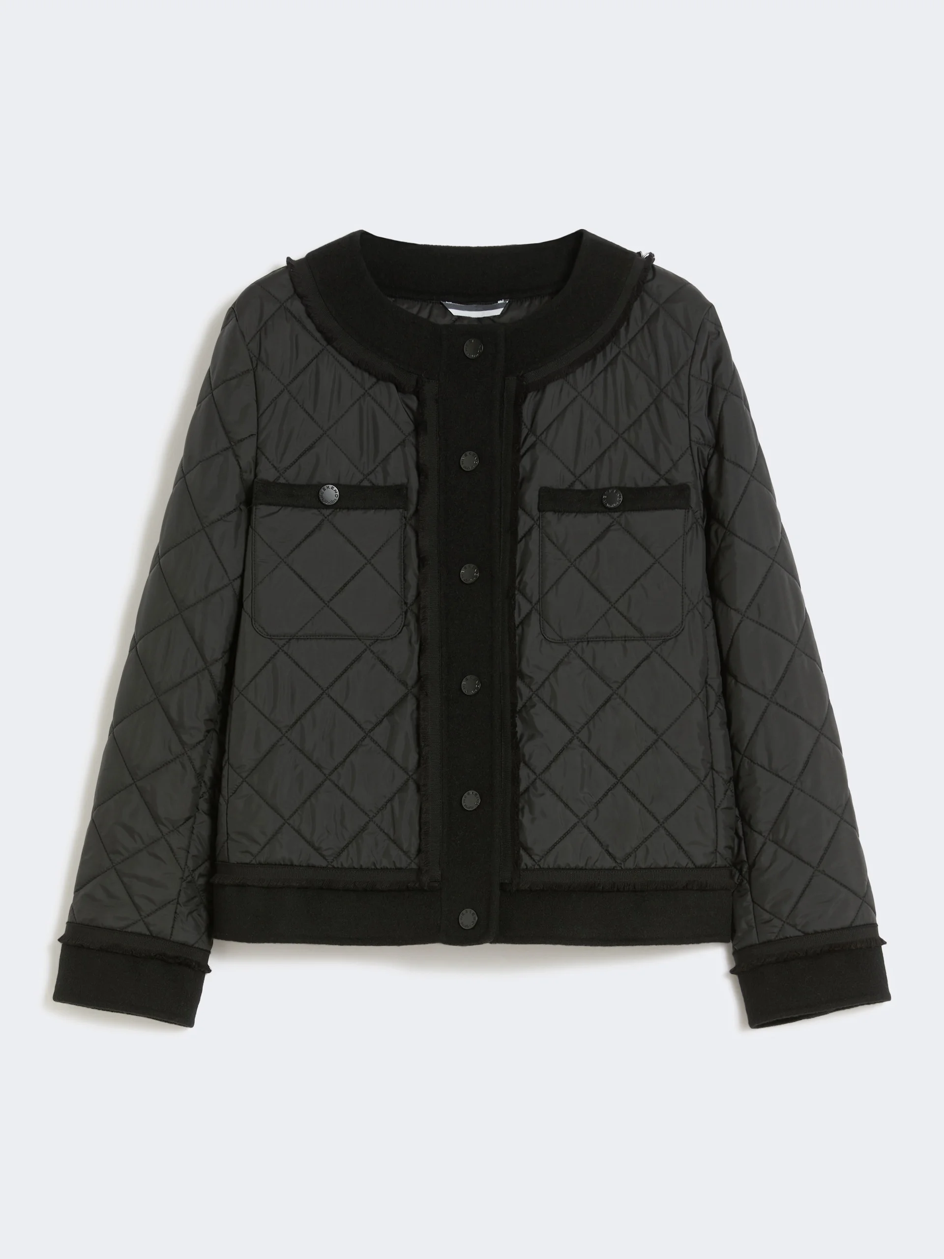 DETAILS Cropped jacket, padded in Luxepad Ultra Fine Insulation Technology. - Water-repellent canvas jacket with all-over quilted detail - Feminine silhouette - Crew neck and long sleeves - Press-stud fastening on the front - Patch pockets on the chest - Passementerie trim details and hand-sewn double-sided wool inserts - Small butterfly logo on the back of the neck COMPOSITION AND CARE Fabric 100% polyester; with quilting in 52% wool, 48% polyester; lining 100% polyester; fabric 2 90% virgin wool, 10% polyamide; - except joining thread, exclusive of decoration. Do not wash; do not bleach; do not tumble dry; cool iron; professionally dry clean perchloroethylene - mild process; do not wet clean.; wash the garment while it is fastened.; don’t iron the labels.; protect buttons before washing.; turn the articles inside out before washing. Distributed by Max Mara S.r.l., registered office in Reggio Emilia (Italy), Via Giulia Maramotti 4, 42124 (IT) Collection: Weekend Max Mara Product code: 5481066106005 - WKDFERRO