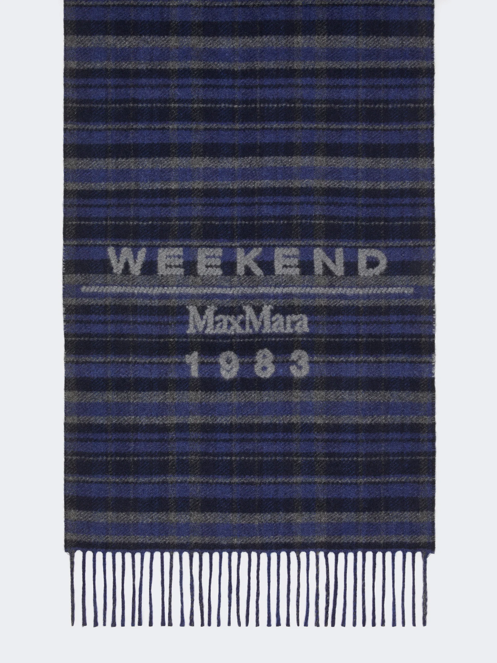 DETAILS Customised stole with jacquard design and Weekend Max Mara 1983 lettering on the hem. Wool blend stole Fringe motif on the short sides Measurements: 167 x 40 cm COMPOSITION AND CARE 97% wool, 3% polyamide. Do not wash; do not bleach; do not tumble dry; cool iron; professionally dry clean perchloroethylene - mild process; do not wet clean. Distributed by Max Mara S.r.l., registered office in Reggio Emilia (Italy), Via Giulia Maramotti 4, 42124 (IT)