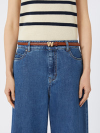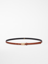 DETAILS Thin belt featuring a "W" logo-decorated twin buckle. - Vegetable-tanned leather belt - Completely smooth, semi-glossy-look - Comes in a Weekend Max Mara branded fabric dust bag - 1.5 cm wide COMPOSITION AND CARE Material belt cattle; back cattle. Distributed by Max Mara S.r.l., registered office in Reggio Emilia (Italy), Via Giulia Maramotti 4, 42124 (IT)