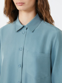DETAILS Soft silhouette shirt with chest pocket. Pure washed silk shirt Slightly flared skirt at the hem Shirt collar and cuffs Long set-in sleeves Front fastening with visible buttons Yoke seam and central pleat on the back Rounded hem COMPOSITION AND CARE 100% silk. Hand wash cold (40°c max); do not bleach; do not tumble dry; line drying in the shade; cool iron; professionally dry clean perchloroethylene - mild process; do not wet clean.; wash the garment while it is fastened.; turn the articles inside out before washing.; contains non-textile parts of animal origin. Distributed by Max Mara S.r.l., registered office in Reggio Emilia (Italy), Via Giulia Maramotti 4, 42124 (IT)