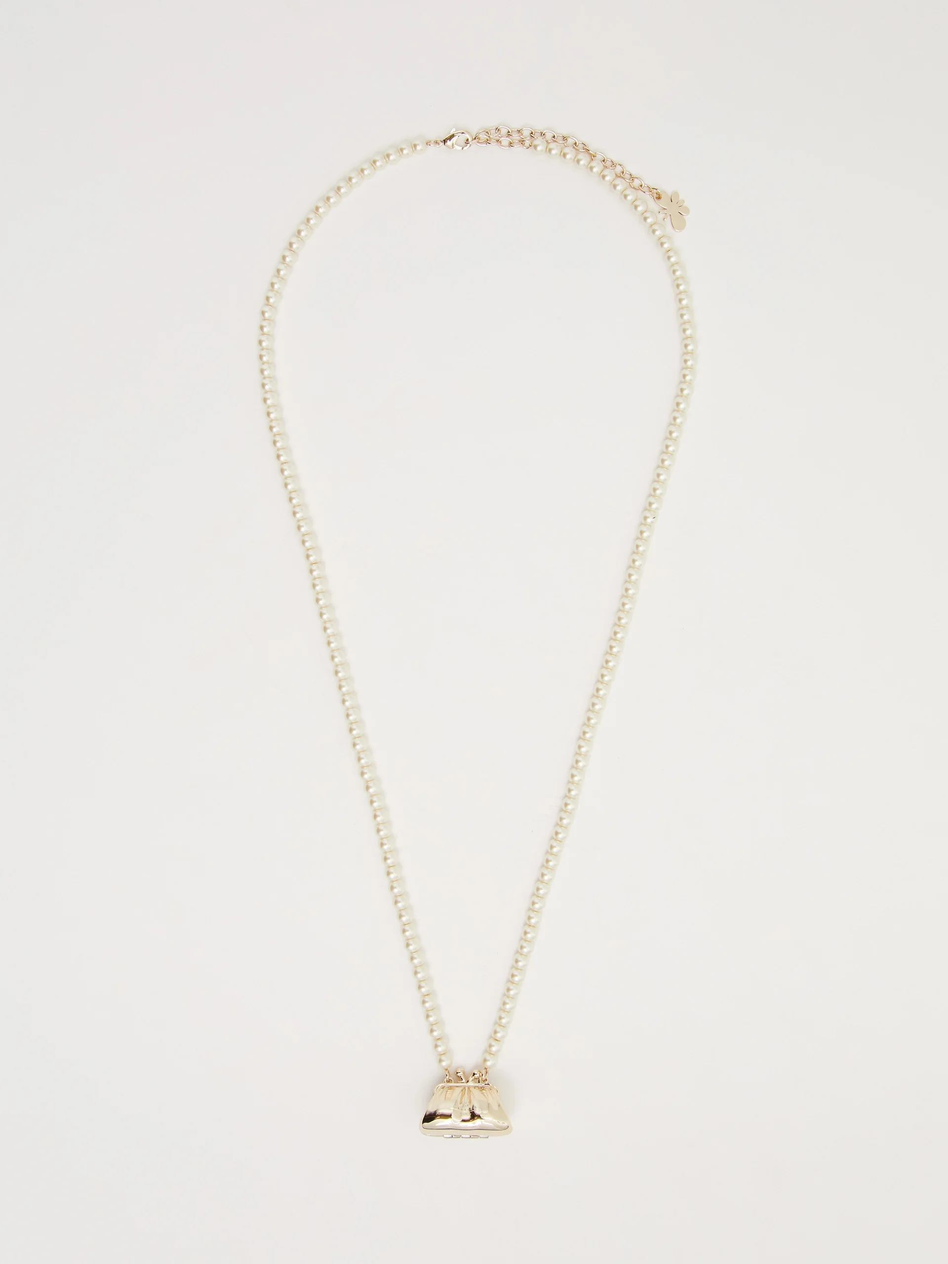 DETAILS Micro pearl choker necklace embellished with an iconic Pasticcino Bag-shaped opening charm. Glass-element necklace Metal details Adjustable clasp at the back COMPOSITION AND CARE Glass, metal. Distributed by Max Mara S.r.l., registered office in Reggio Emilia (Italy), Via Giulia Maramotti 4, 42124 (IT)