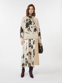 DETAILS Oversized jumper decorated with an intarsia knit with collection designs on the front and sleeves. Pure wool yarn jumper Wide lines and regular length Crew neck Long sleeves with dropped shoulders Ribbed edges COMPOSITION AND CARE 100% virgin wool. Hand wash cold (40°c max); do not bleach; do not tumble dry; flat drying in the shade; cool iron; professionally dry clean perchloroethylene - mild process; do not wet clean.; iron with a cloth between.; using neutral detergent. Distributed by Max Mara S.r.l., registered office in Reggio Emilia (Italy), Via Giulia Maramotti 4, 42124 (IT)
