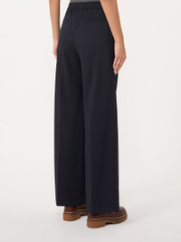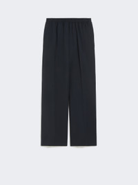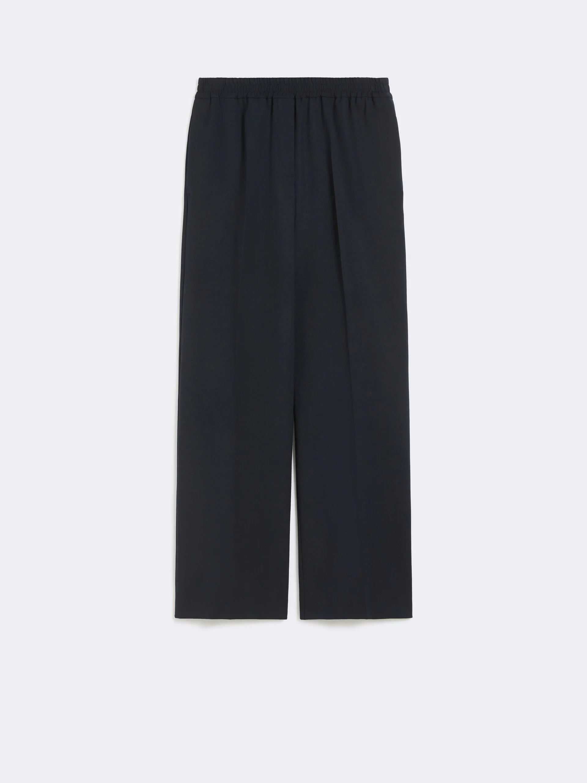 DETAILS Long comfort fit trousers with elastic waistband and adjustable inner drawstring. Stretch technical wool gabardine pants Straight cut Side inset pockets Welt pockets at the back Trouser crease COMPOSITION AND CARE 53% polyester, 43% virgin wool, 4% elastane. Hand wash cold (40°c max); do not bleach; do not tumble dry; line drying in the shade; cool iron; professionally dry clean perchloroethylene - mild process; do not wet clean. Distributed by Max Mara S.r.l., registered office in Reggio Emilia (Italy), Via Giulia Maramotti 4, 42124 (IT)