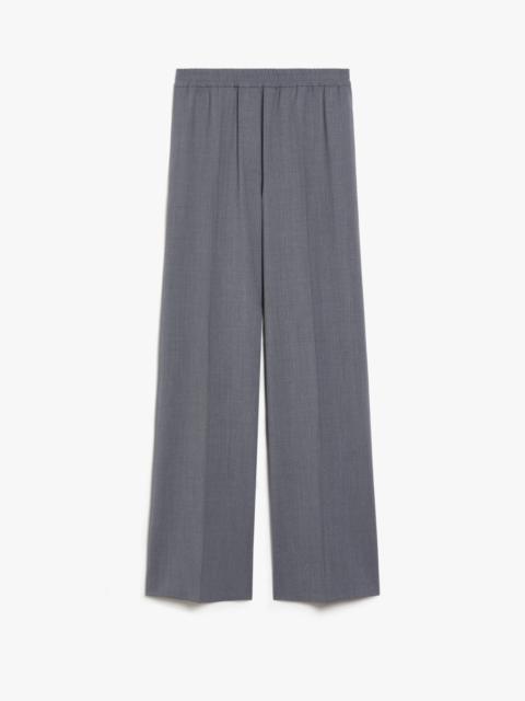 DETAILS Straight-fit trousers in stretch technical wool gabardine fabric. The straight-leg model boasts an elasticated waistband, complete with an adjustable internal drawstring. Pressed pleat detail, in-seam side pockets and welt rear pockets. COMPOSITION AND CARE 53% polyester, 43% virgin wool, 4% elastane. Hand wash cold; do not bleach; do not tumble dry; line drying in the shade; cool iron; professionally dry clean perchloroethylene - mild process; do not wet clean. Distributed by Max Mara S.r.l., registered office in Reggio Emilia (Italy), Via Giulia Maramotti 4, 42124 (IT)