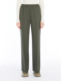 DETAILS Straight-fit trousers in stretch technical wool gabardine fabric. The straight-leg model boasts an elasticated waistband, complete with an adjustable internal drawstring. Pressed pleat detail, in-seam side pockets and welt rear pockets. COMPOSITION AND CARE 53% polyester, 43% virgin wool, 4% elastane. Hand wash cold; do not bleach; do not tumble dry; line drying in the shade; cool iron; professionally dry clean perchloroethylene - mild process; do not wet clean. Distributed by Max Mara S.r.l., registered office in Reggio Emilia (Italy), Via Giulia Maramotti 4, 42124 (IT)