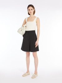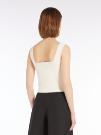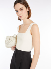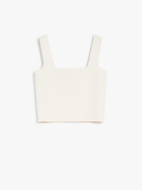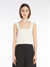 DETAILS Crop top in viscose yarn embellished with jacquard that creates a contrasting all-over pattern. Fitted style finished with a wide square neckline and piped edges. COMPOSITION AND CARE 83% viscose, 17% polyester. Hand wash cold; do not bleach; do not tumble dry; flat drying in the shade; cool iron; professionally dry clean perchloroethylene - mild process; do not wet clean.; iron with a cloth between.; using neutral detergent. Distributed by Max Mara S.r.l., registered office in Reggio Emilia (Italy), Via Giulia Maramotti 4, 42124 (IT)