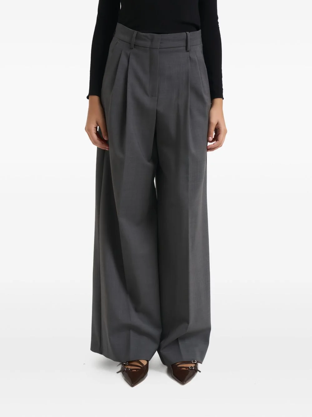 pleated pants Highlights - Grey - Belt loops - Rear welt pocket - Front pleats - Wide leg Imported Composition Virgin Wool 100% Washing instructions Read Manufacturer Guidelines