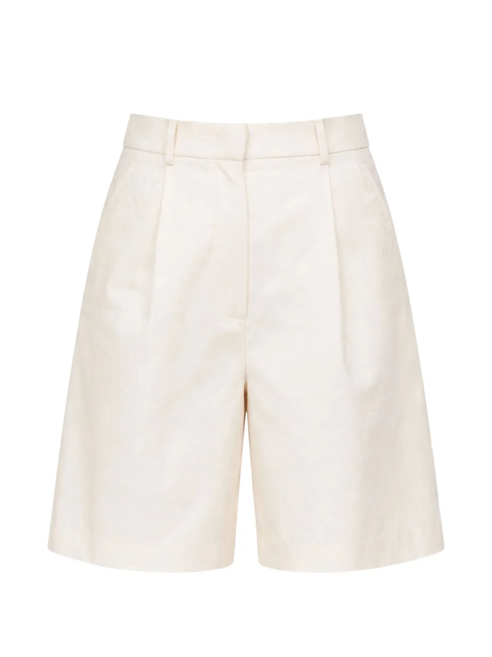 pleated tailored shorts Highlights - Ecru - Pleat detailing - Belt loops - Concealed front fastening - Two side slit pockets Imported Composition Cotton 74%, Linen/Flax 26% Washing instructions Read Manufacturer Guidelines